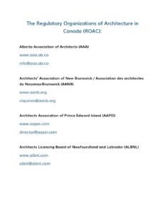 Contact Information for Regulatory Organizations of Architecture in Canada (ROAC)